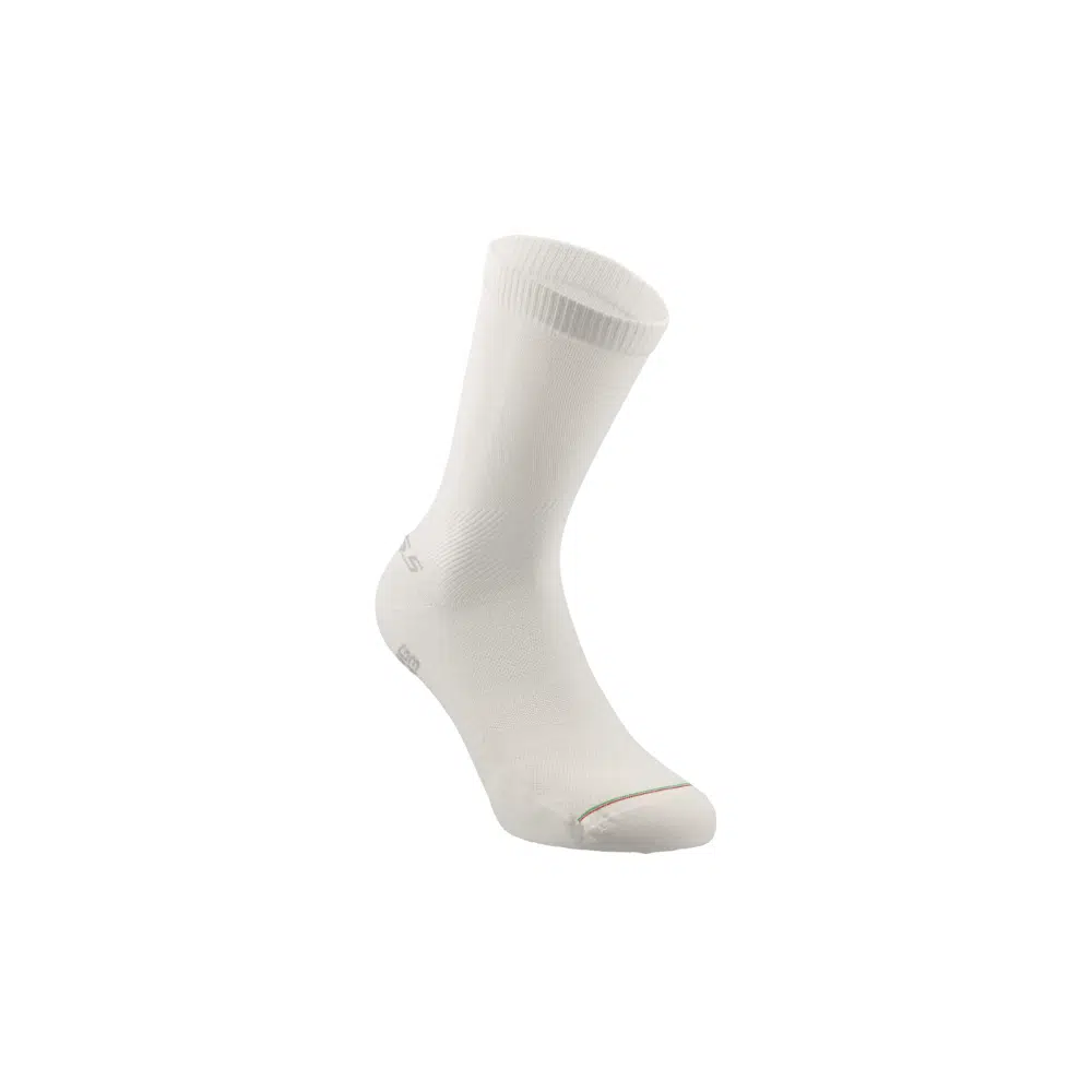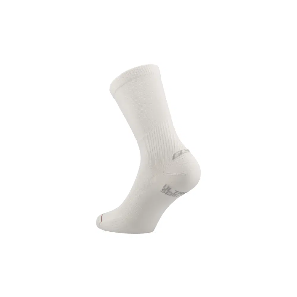 Bir gizli silah çorabın renk şeması, hassas ve seçici bir profesyonelin sponsorluk sözleşmesini bozmadan giyebileceği tek şekilde olmalı: tamamen beyaz, işaretsiz. Fazla detay vermeden, bu çorap (orijinal versiyonunda) tamamen beyaz ve işaretsizdir. Başlangıçta, daha doğrudan pedal hissi için daha sıkı ayakkabı tercih eden elit bisikletçiler için tasarlandı; bu nedenle teknolojinin izin verdiği en ince çoraba ihtiyaç duyar. Dikişsiz tüp çorap, ultra ince, inanılmaz yumuşak mikrofiber filament ile yüksek elastan içeriğiyle örülür; ayakkabı ile sıfır kırışıklık arayüzü ve sıkı uyum sağlar. Nefes alabilirlik için stratejik file paneller ve iki çok kanallı kabartılı yastıklama bölgesiyle tasarlandı: biri metatarsal bölgede, diğeri Aşil tendonunu korumak için. Neredeyse giydiğinizi fark etmeyeceksiniz.